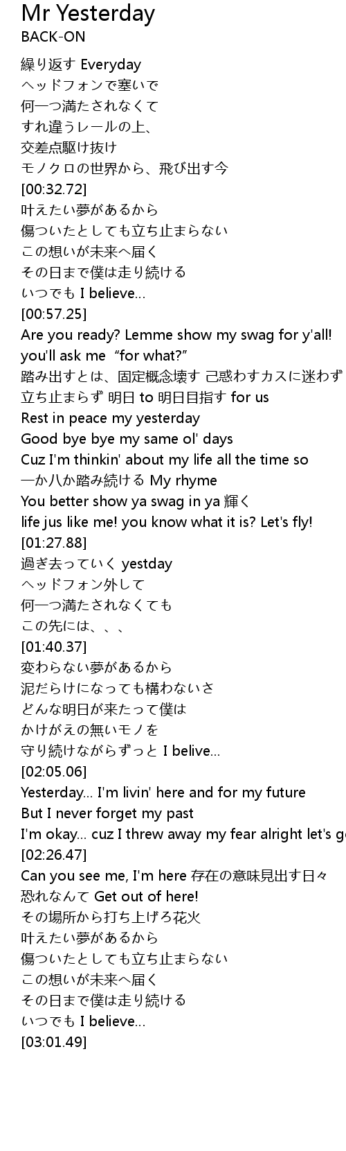 | [02:12.36] | Yesterday... I'm livin' here and for my future |