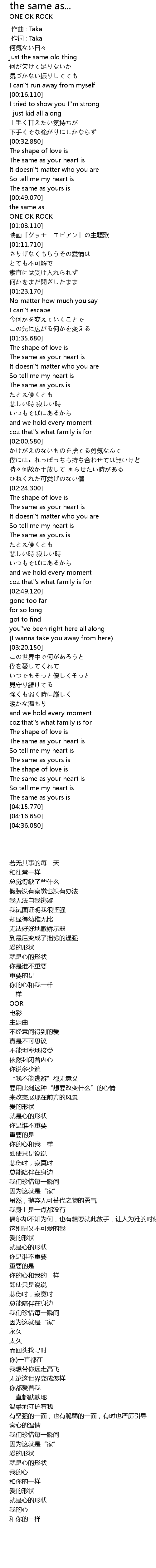 | [00:00.356] | 作词 : Taka |