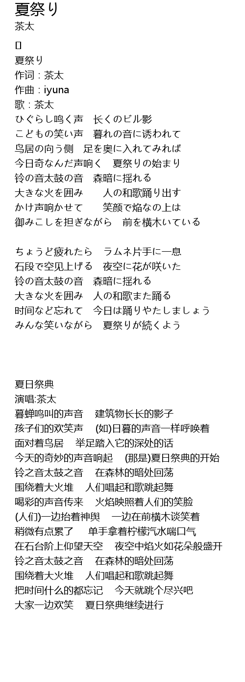 | [01:00.468] | 今日奇なんだ声响く 夏祭りの始まり |