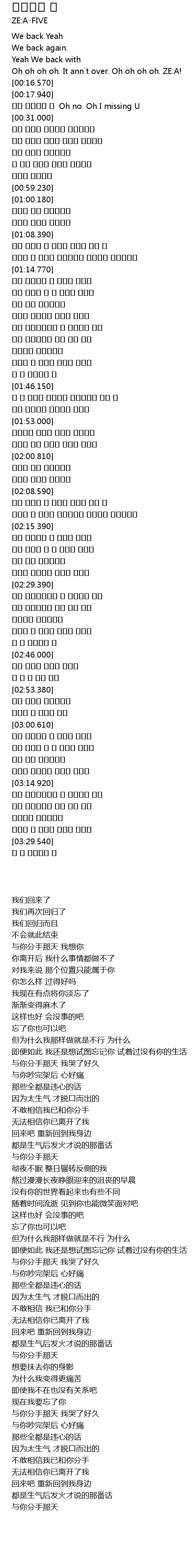 | [00:09.090] | Oh oh oh oh. It ann`t over. Oh oh oh oh. ZE:A! |