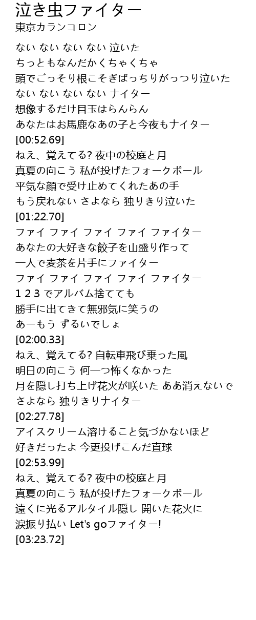 | [03:16.87] | 涙振り払い Let's goファイター! |