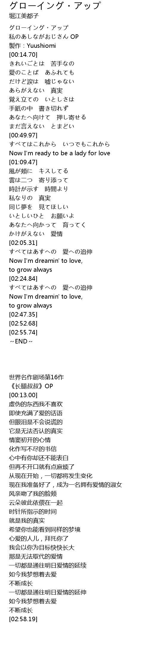| [02:06.29] | すべてはあすへの 愛への追伸 |