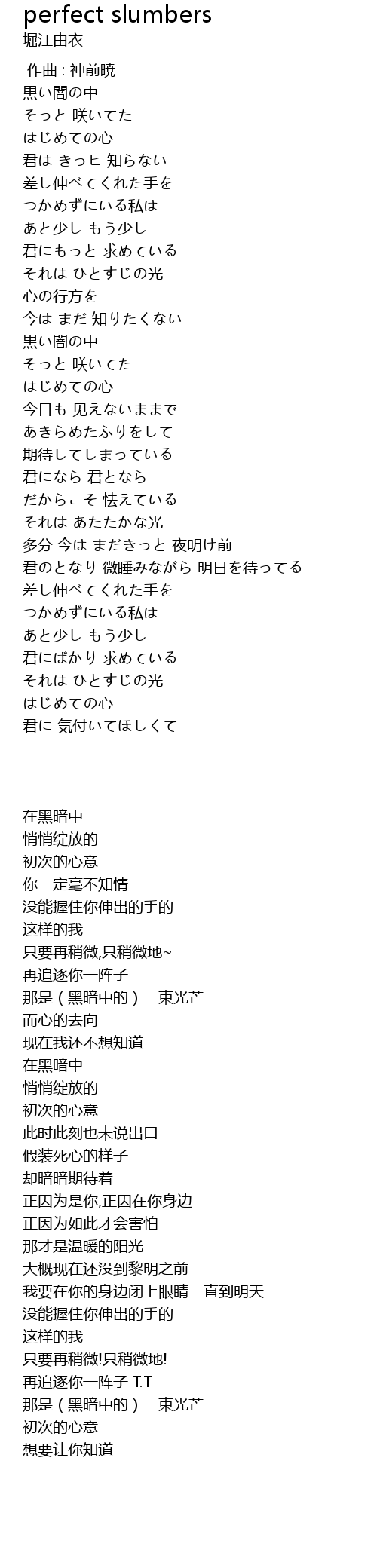 | [02:57.076] | 君のとなり 微睡みながら 明日を待ってる |