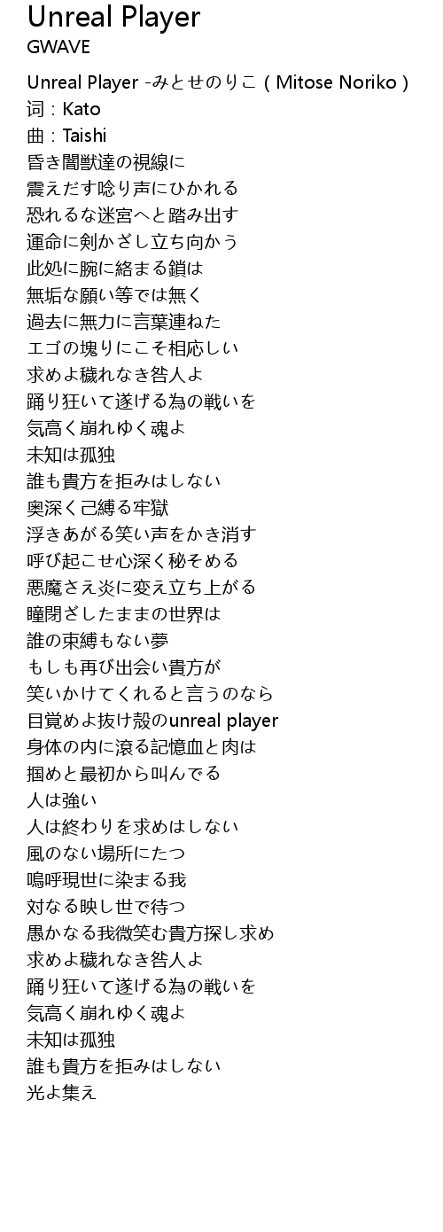 | [00:00.298] | Unreal Player -みとせのりこ(Mitose Noriko) |