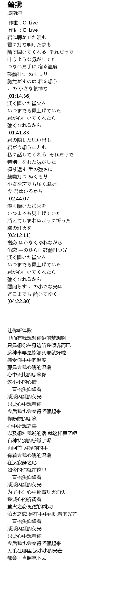 | [03:15.05] | 蛍恋 はかなくゆれながら |
