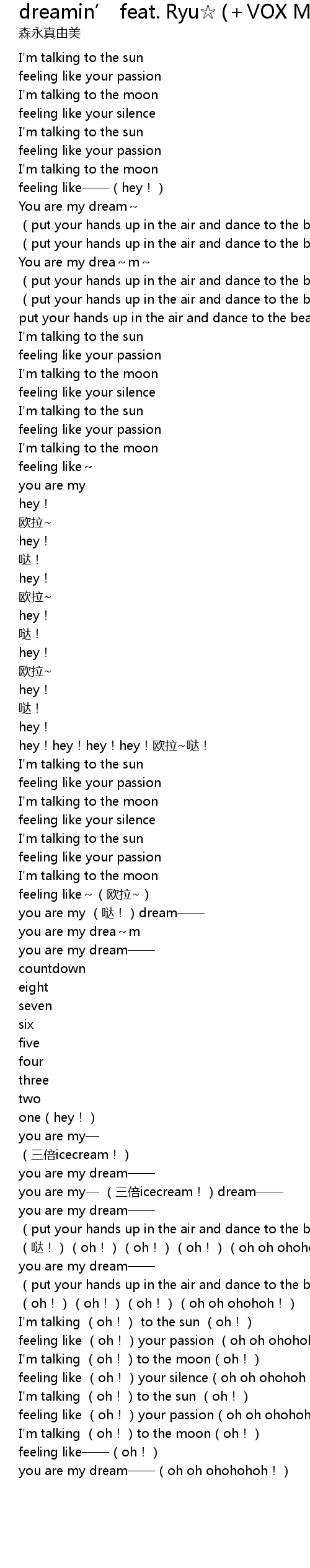 | Song | dreamin’ feat. Ryu☆ (+VOX Mix) |