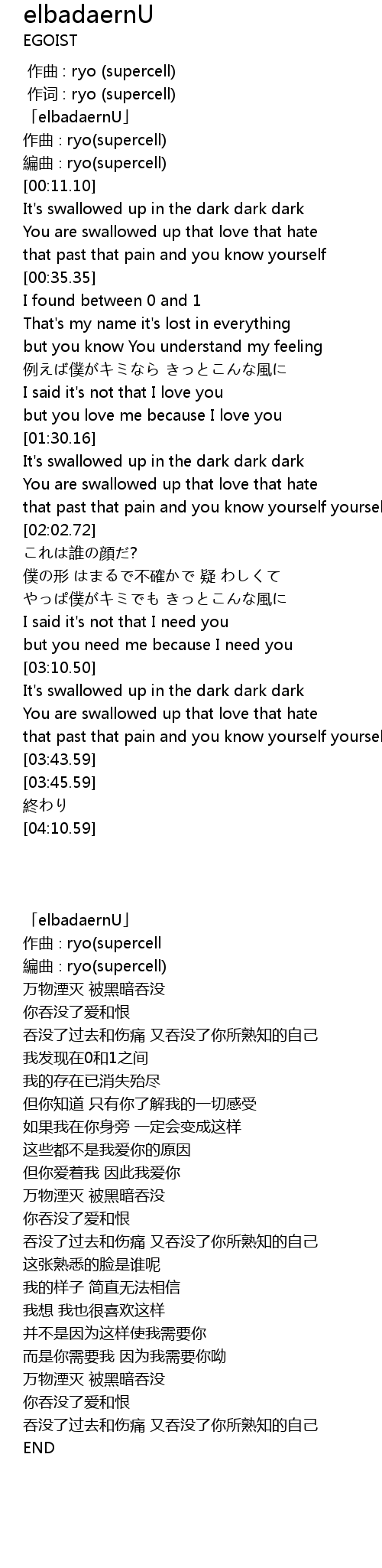 | [00:00.03] | 作词 : ryo (supercell) |