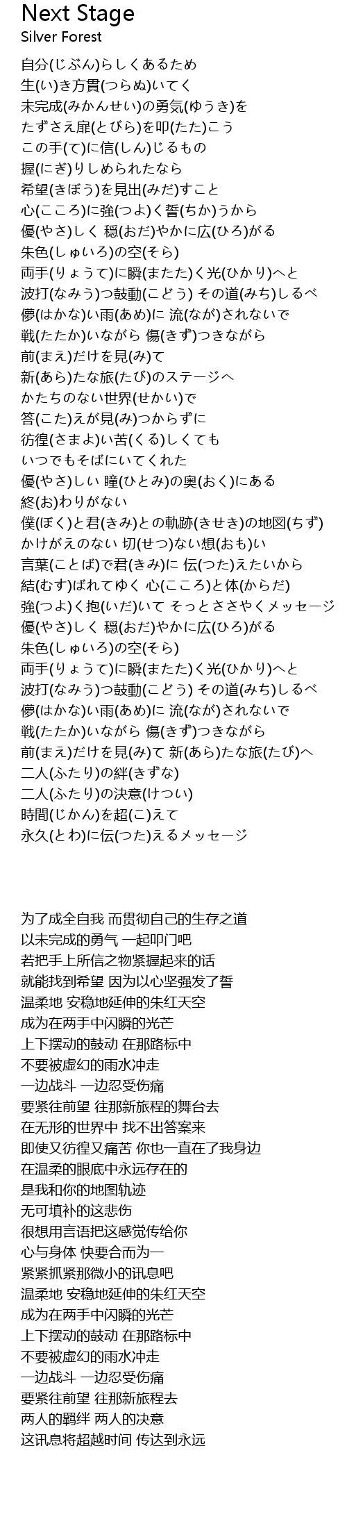 | [02:56.950] | 終(お)わりがない 僕(ぼく)と君(きみ)との軌跡(きせき)の地図(ちず) |