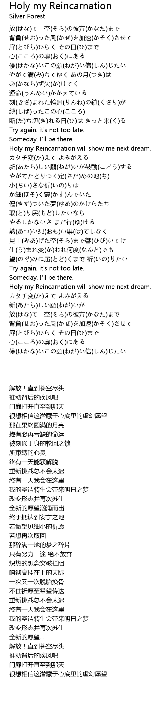 | [01:23.300] | Holy my Reincarnation will show me next dream. |