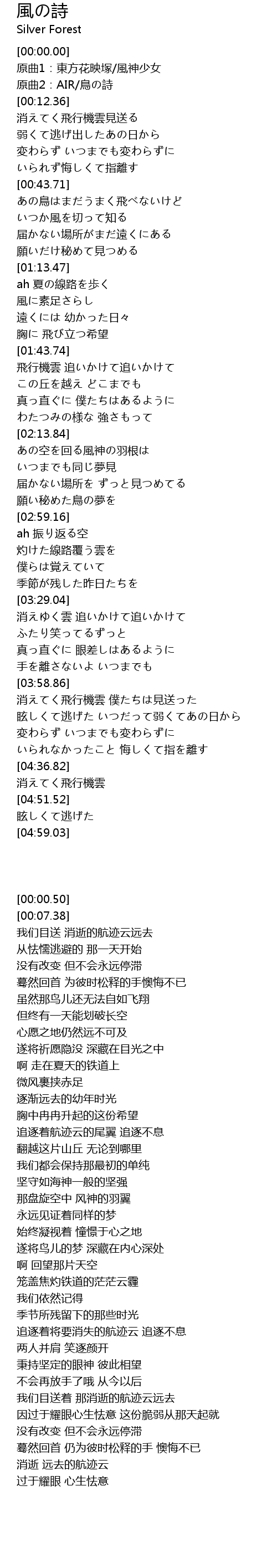 | [00:07.38] | 原曲2:AIR/鳥の詩 |
