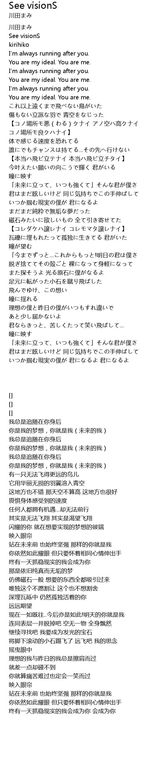 | [00:06.12] | You are my ideal. You are me. |