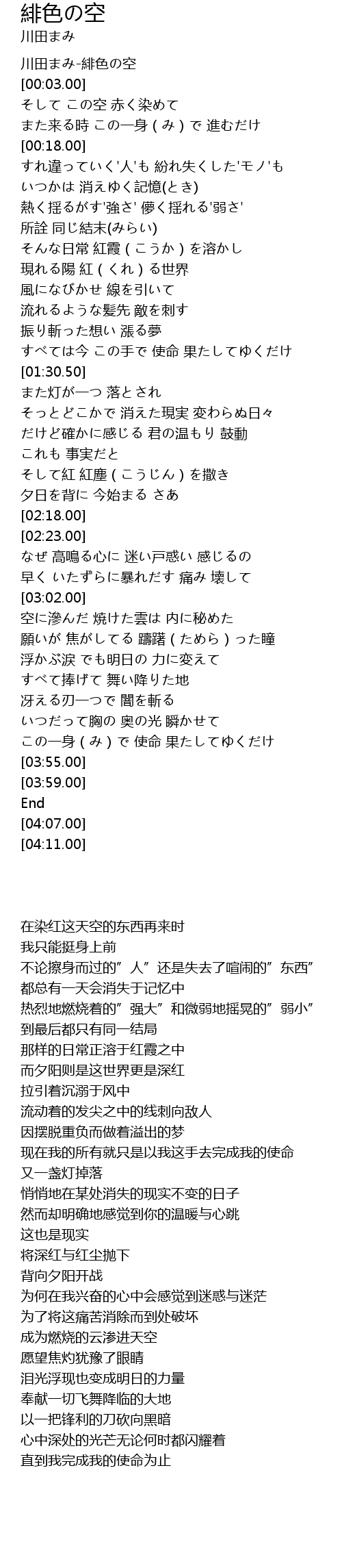 | [00:00.00] | 川田まみ-緋色の空 |