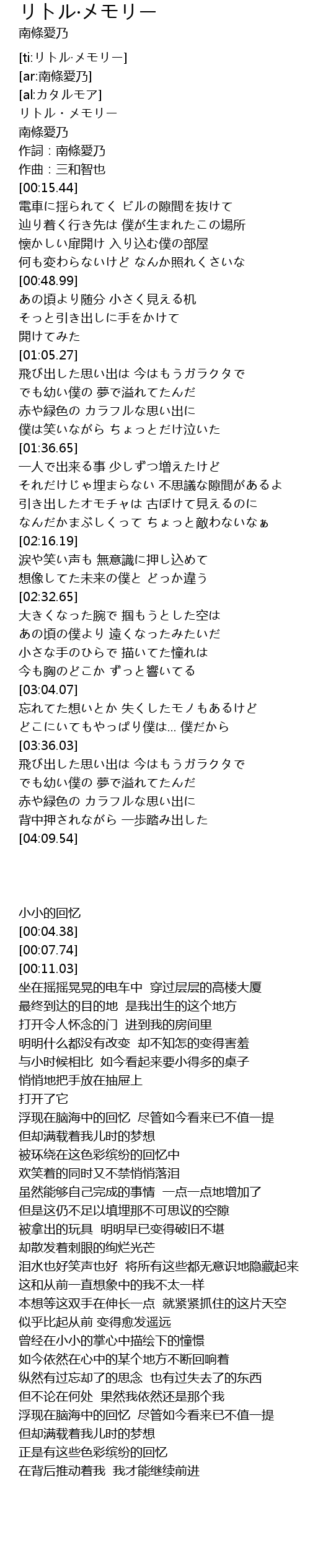 | [02:56.33] | 今も胸のどこか ずっと響いてる |