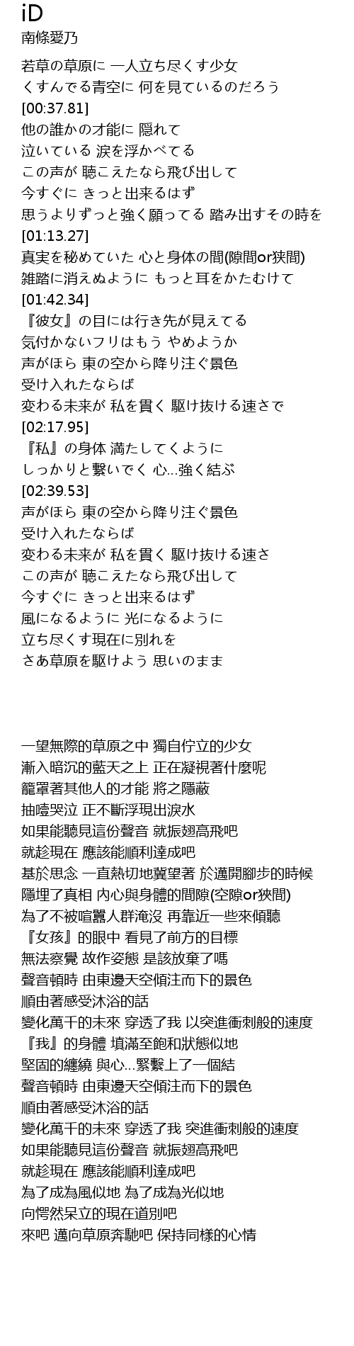 | [00:16.80] | 若草の草原に 一人立ち尽くす少女 |