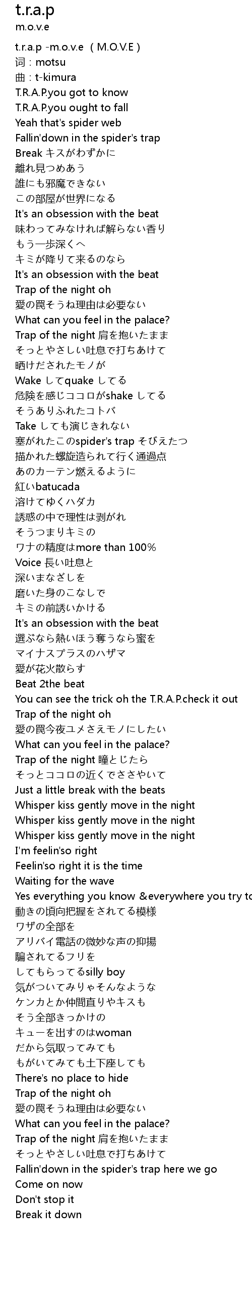 | [00:00.26] | t. r. a. p m. o. v. e M. O. V. E |