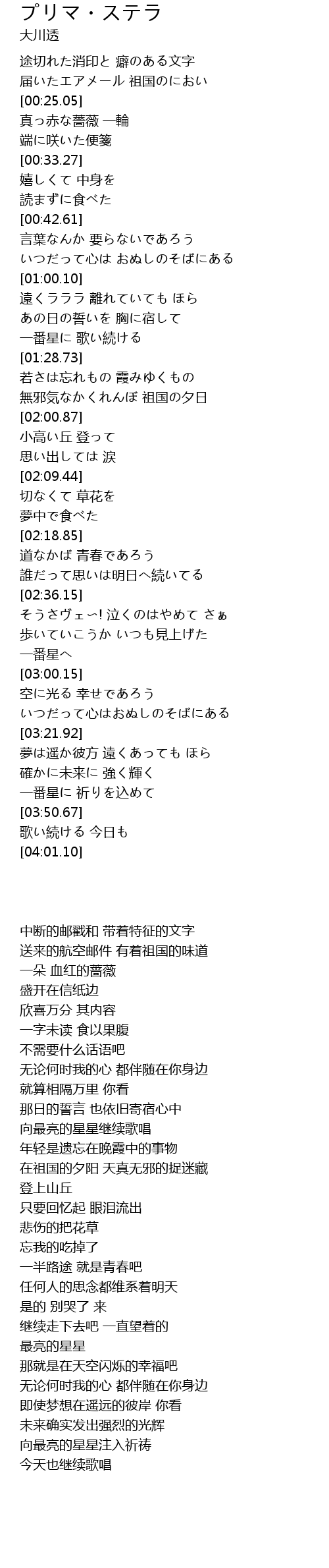 | [00:17.50] | 届いたエアメール 祖国のにおい |