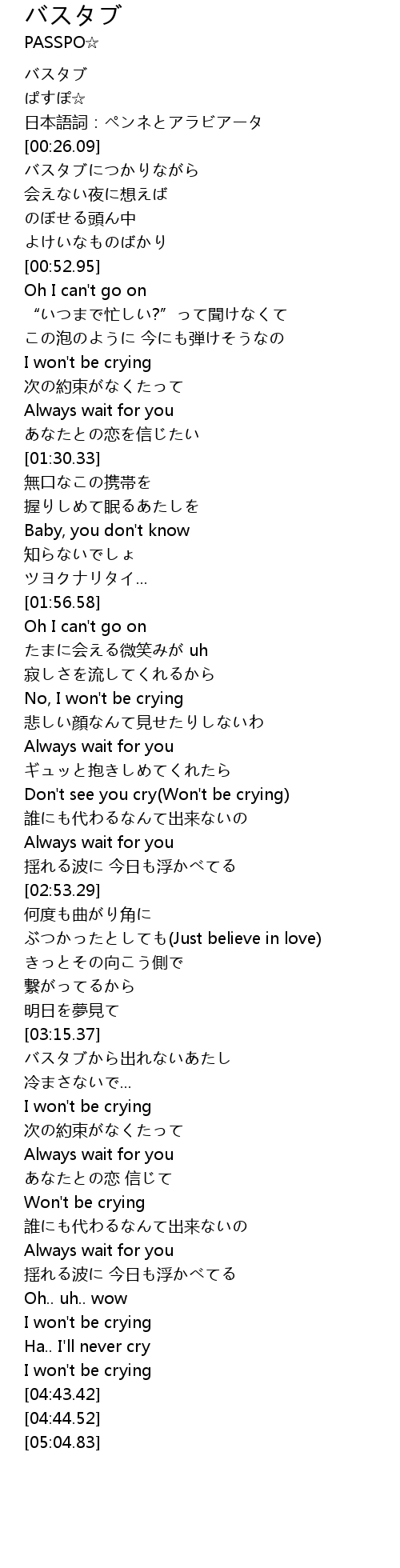 | [03:36.47] | I won't be crying |