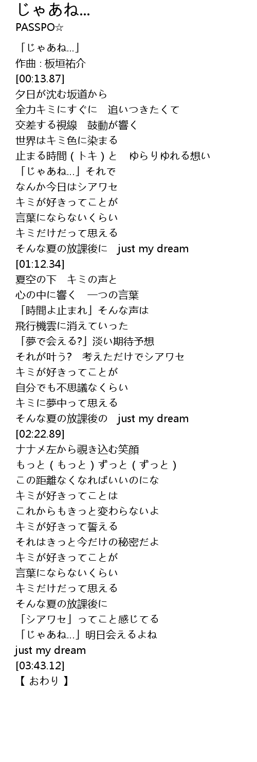 | [02:16.50] | そんな夏の放課後の just my dream |