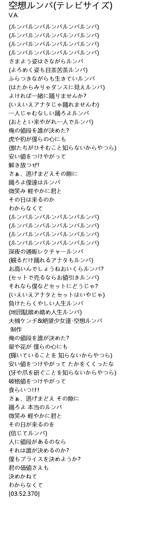 | [03:09.340] | 踊ろよ 本当のルンバ |
