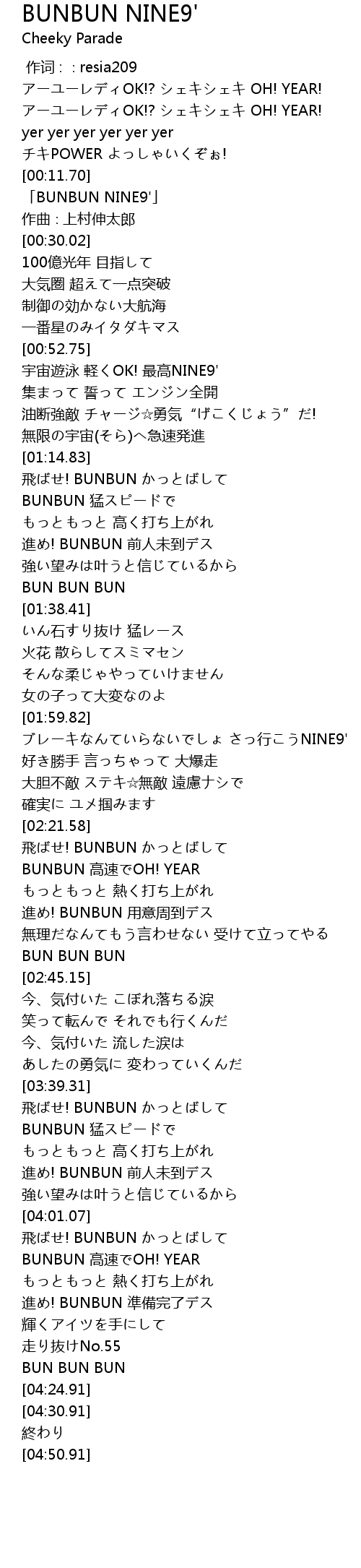 | [00:13.02] | 「BUNBUN NINE9'」 |