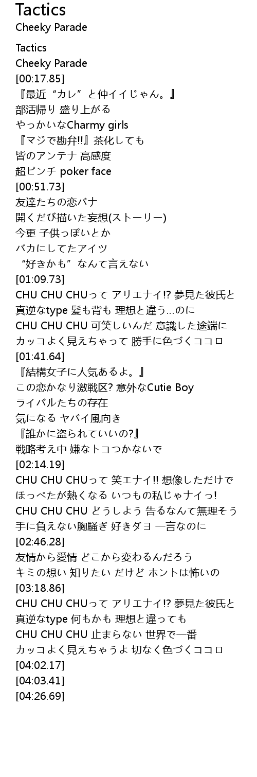 | [03:43.73] | CHU CHU CHU 止まらない 世界で一番 |