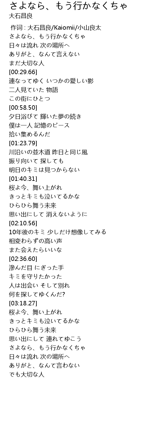 | [03:44.76] | さよなら、もう行かなくちゃ |