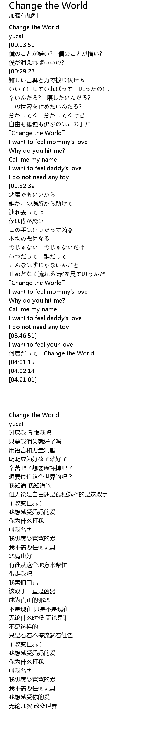 | [00:16.17] | 僕のことが嫌い? 僕のことが憎い? |