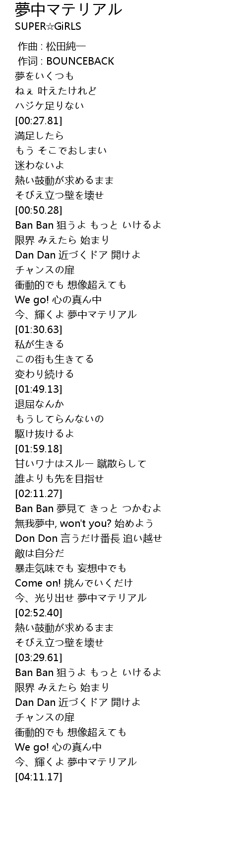 | [04:01.16] | 今、輝くよ 夢中マテリアル |