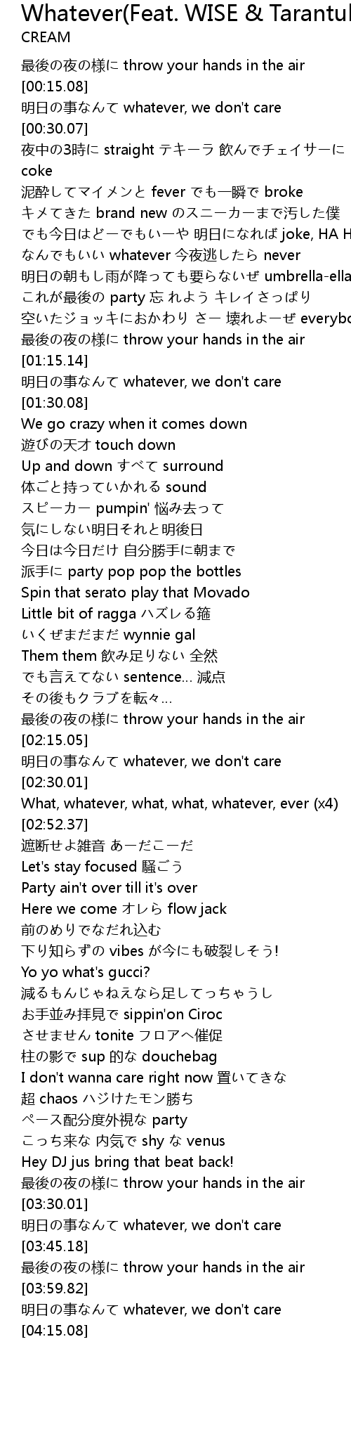 | [02:37.53] | What, whatever, what, what, whatever, ever x4 |