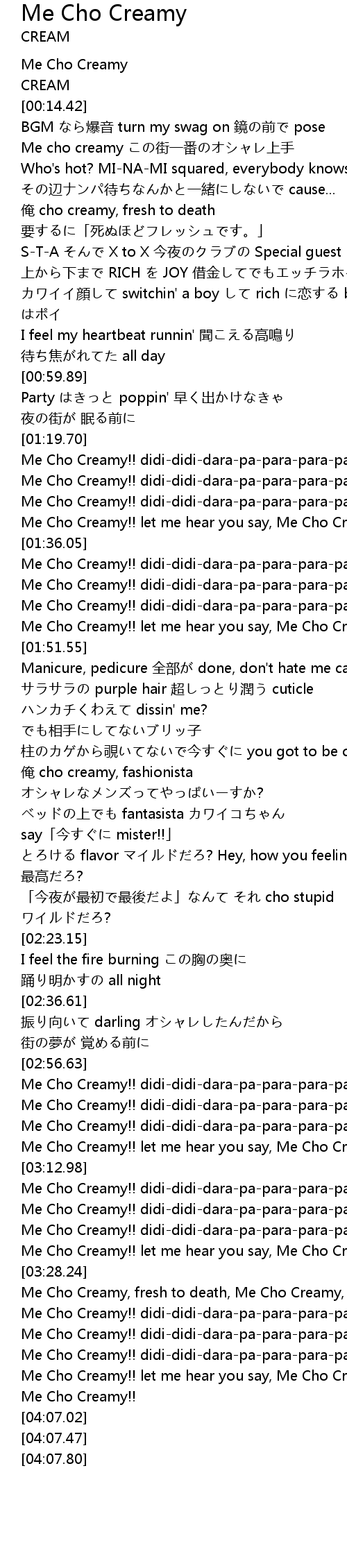 | [03:17.44] | Me Cho Creamy!! didi-didi-dara-pa-para-para-pa let me hear you say |