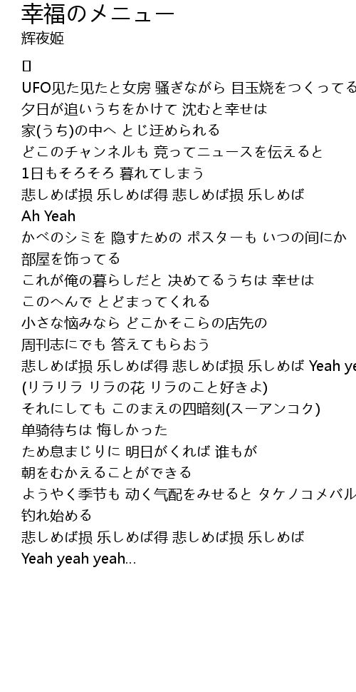 | 悲しめば损 乐しめば得 悲しめば损 乐しめば Yeah yeah yeah… | |