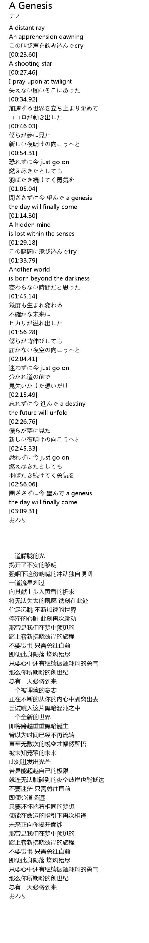 | [02:58.01] | 閉ざさずに今 望んで a genesis |