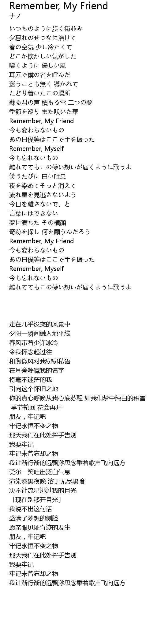 | [01:53.03] | Remember, My Friend |
