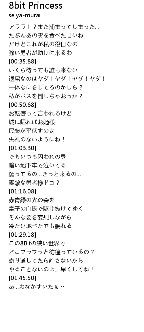 | [01:13.23] | 素敵な勇者様ドコ? |