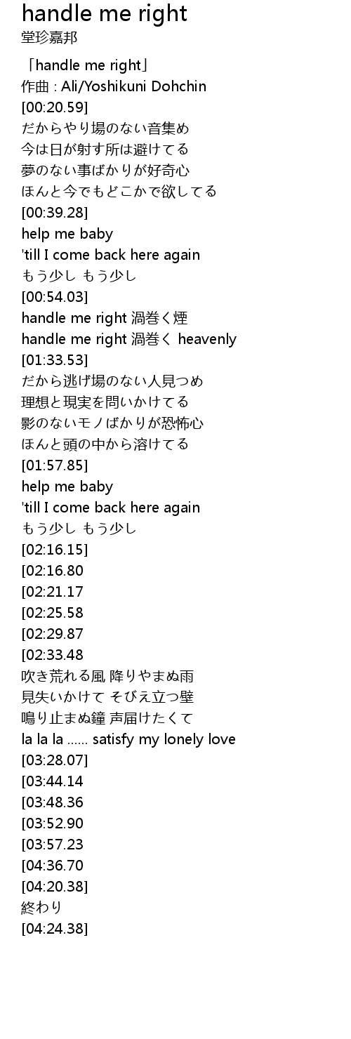 | [00:00.59] | 「handle me right」 |