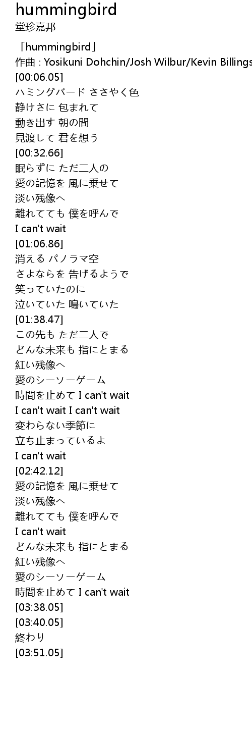 | [00:00.05] | 「hummingbird」 |