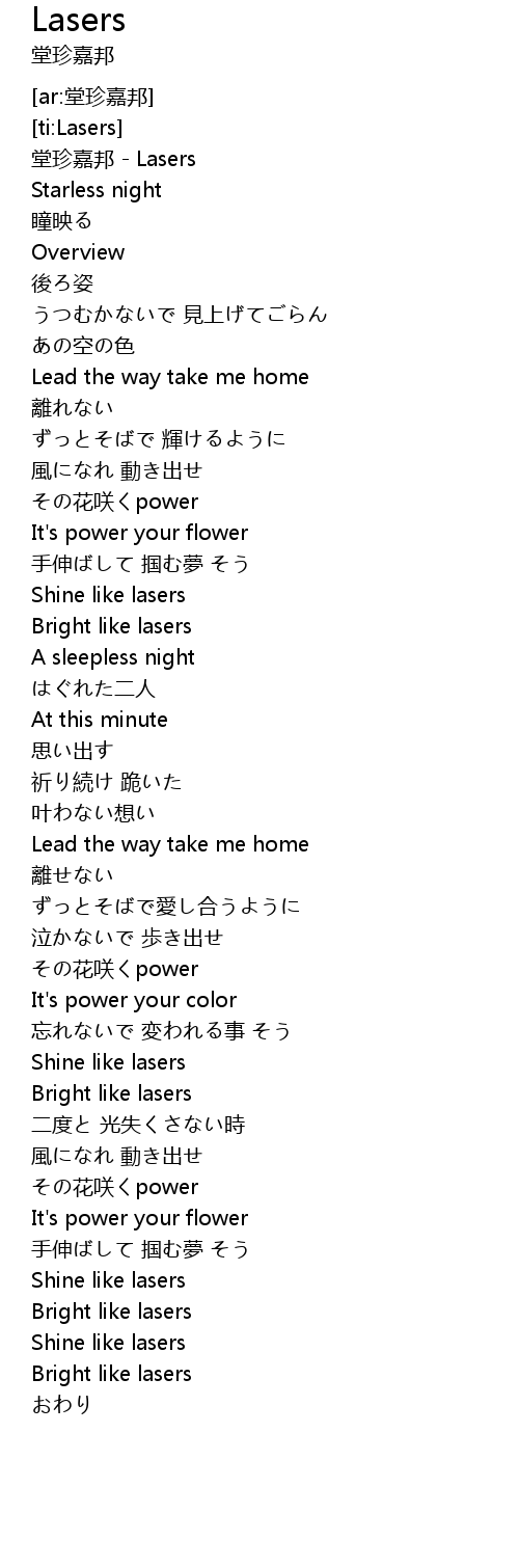 | [00:00.62] | 堂珍嘉邦 - Lasers |