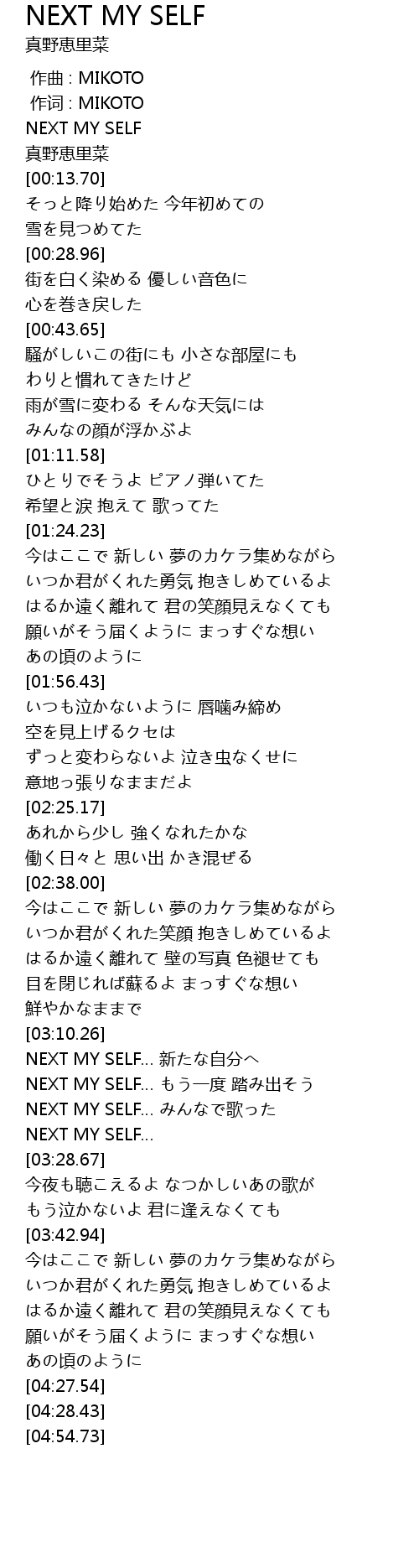 | [03:13.54] | NEXT MY SELF… 新たな自分へ |