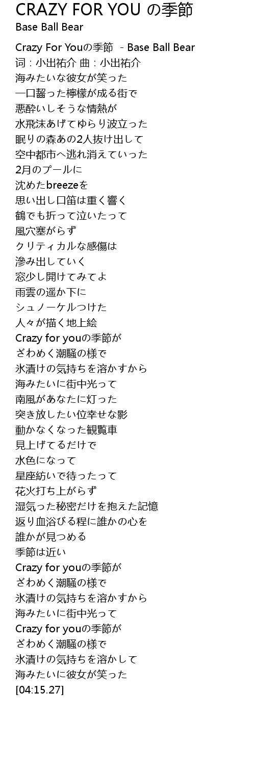 | [00:00.70] | Crazy For Youの季節 - Base Ball Bear |