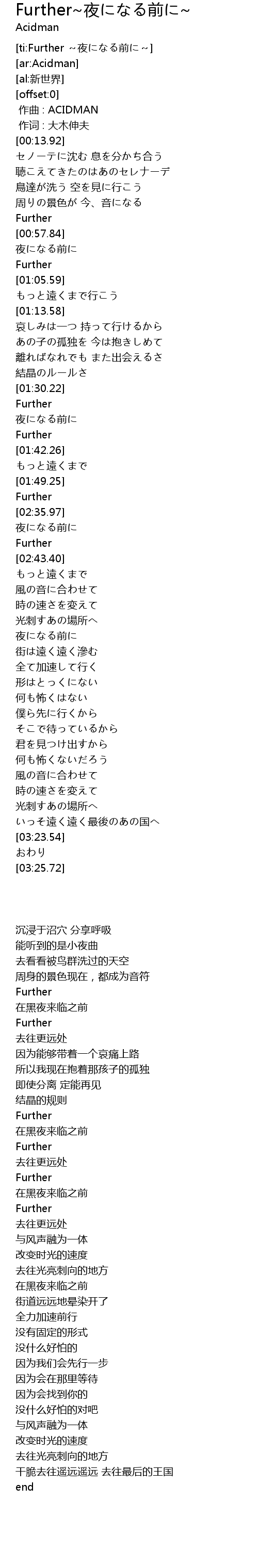 | [00:00.00] | zuò qǔ : ACIDMAN |