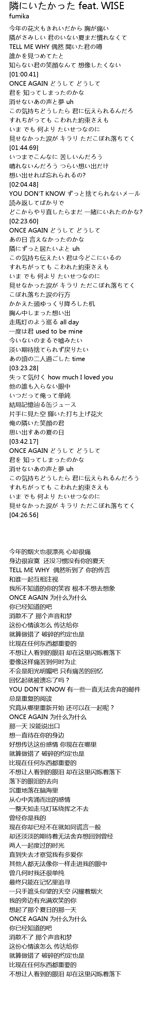 | [02:23.81] | ONCE AGAIN どうして どうして |
