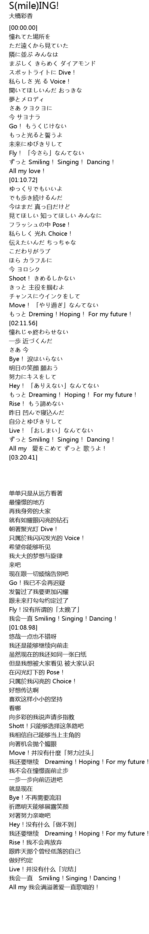 | [01:06.32] | ずっと Smiling! Singing! Dancing! |