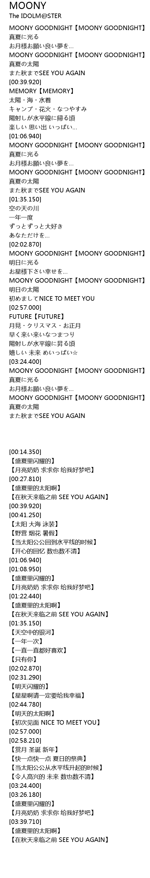 | [00:14.350] | MOONY GOODNIGHT【MOONY GOODNIGHT】 |