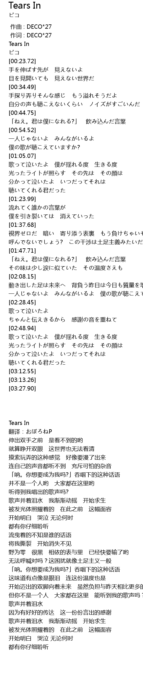 | [00:00.00] | zuò qǔ : DECO 27 |