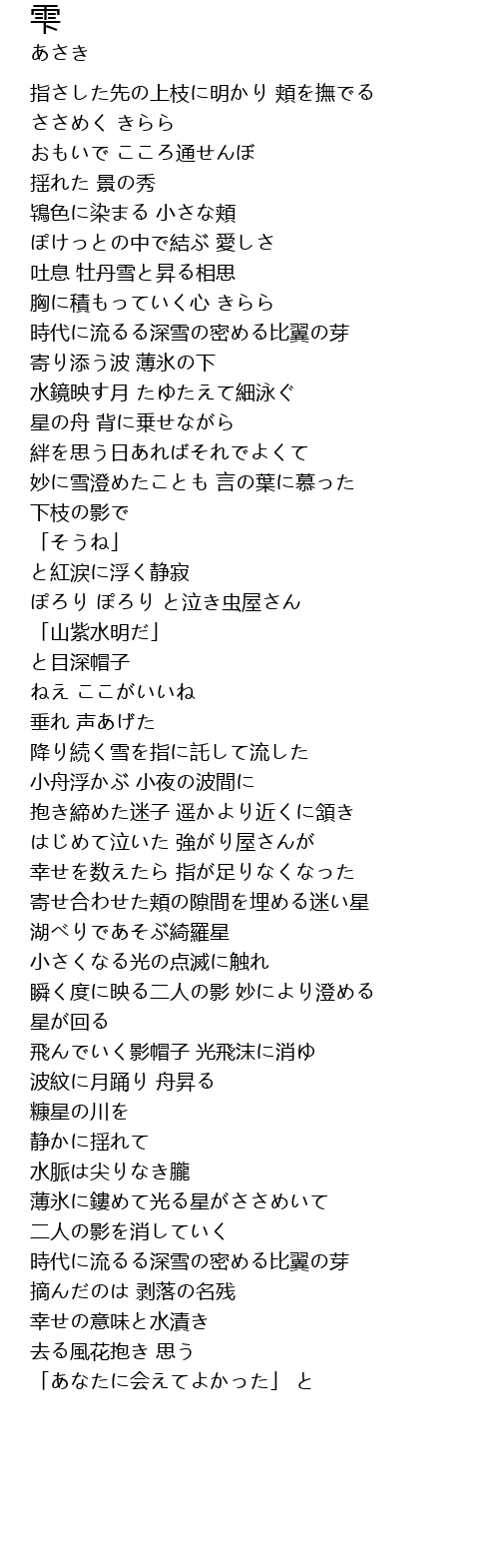 | 薄氷に鏤めて光る星がささめいて | |
