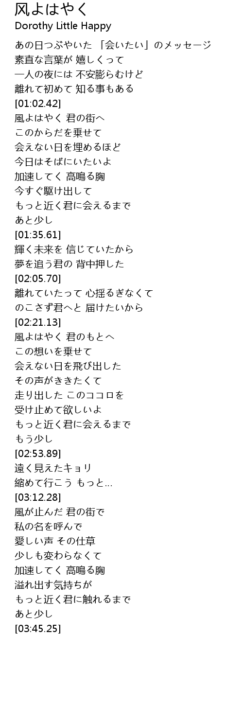 | [01:02.76] | 風よはやく 君の街へ |