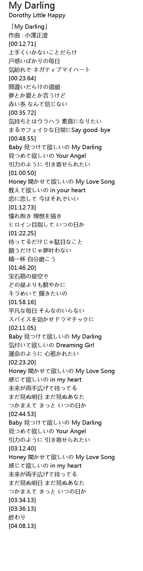 | [03:01.28] | Baby 見つけて欲しいの My Darling |