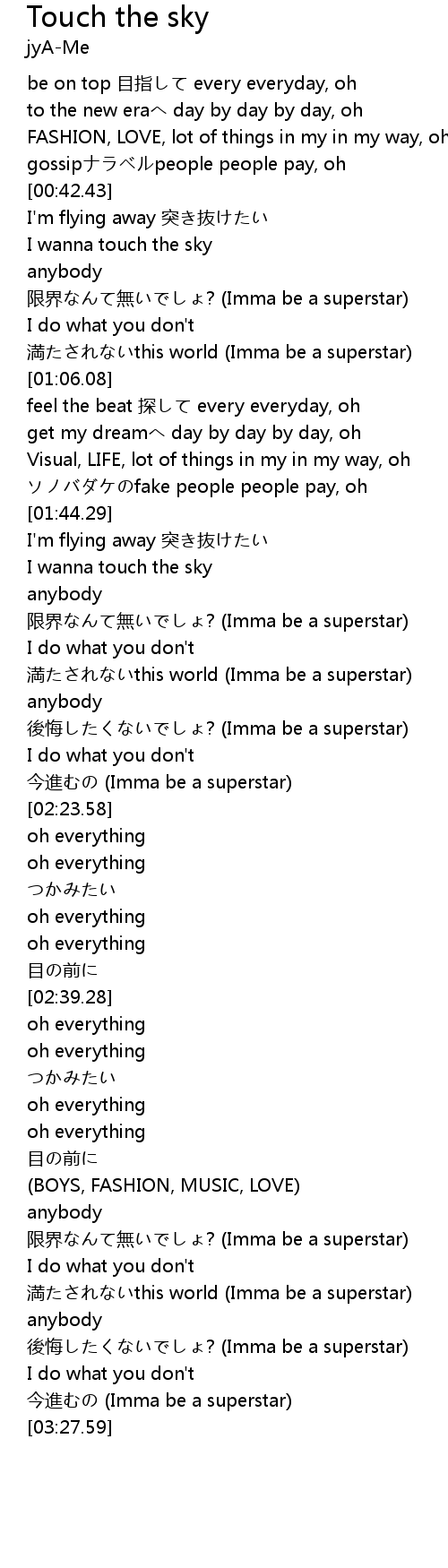 | [02:57.91] | 限界なんて無いでしょ? (Imma be a superstar) |