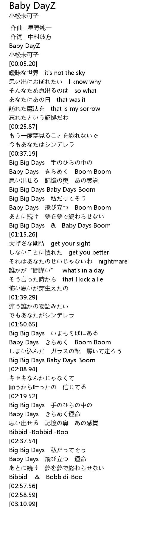 | [00:59.95] | Baby Days 飛び立つ Boom Boom |