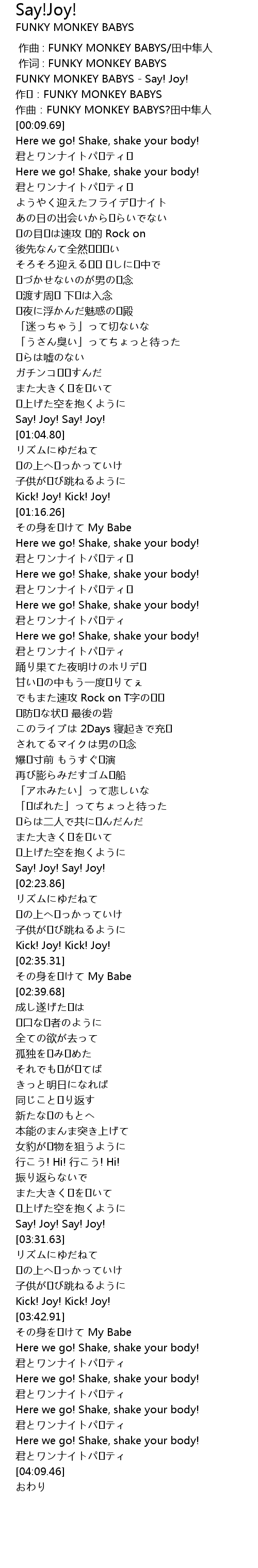 | [00:00.51] | FUNKY MONKEY BABYS - Say! Joy! |